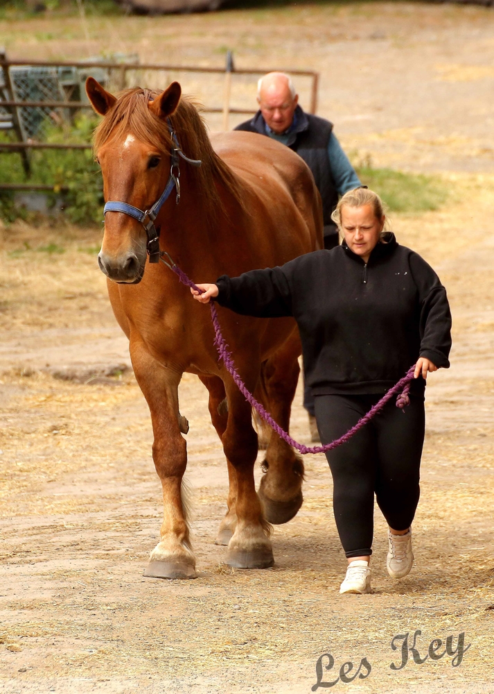 Conformation, Colour and Characteristics: The Suffolk is always chesnut (spelt without the ‘t’) in colour, although the shade can vary from lemon to a very dark liver. Only a small amount of white is allowed on the forehead. Its conformation is very recognisable as the overall appearance is of a very large body on relatively short legs which gives the Suffolk its tremendous strength. There is no superfluous hair on the legs, which is an advantage in a working horse as excessive hair can cause skin infections.